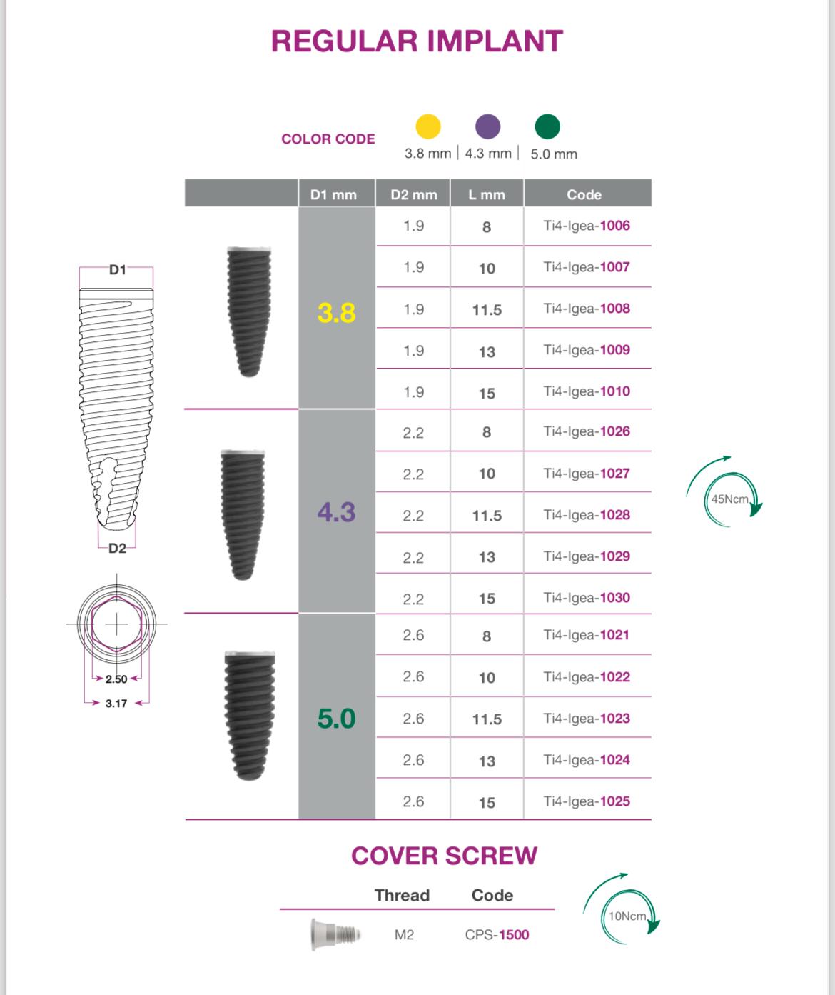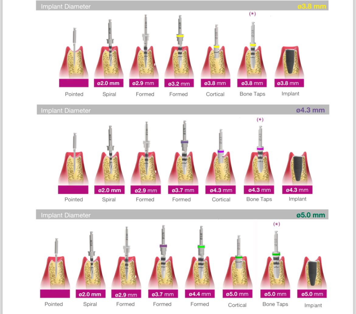 Bağlantı noktası 2.5 çapında ve vida kalınlığı 2.0 çapındadır. Cerrahi set üzerinde R harfi ile simgelenen protokoller uygulanır.